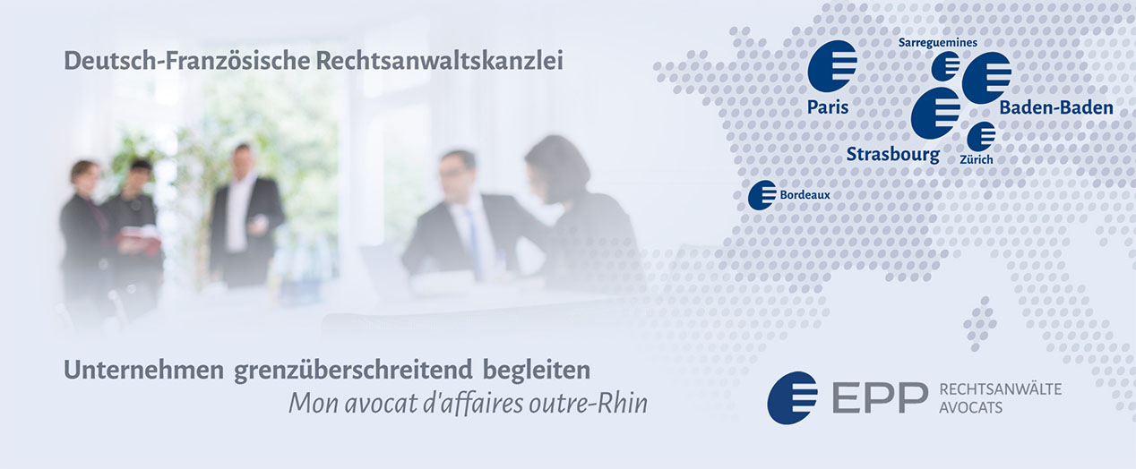 EPP Rechtsanwälte Avocats beraten seit mehr als 25 Jahren Unternehmen mit Sitz in Deutschland, Österreich oder der Schweiz in allen Fragen des französischen Unternehmensrechts, sowie deren Niederlassungen in Frankreich.
