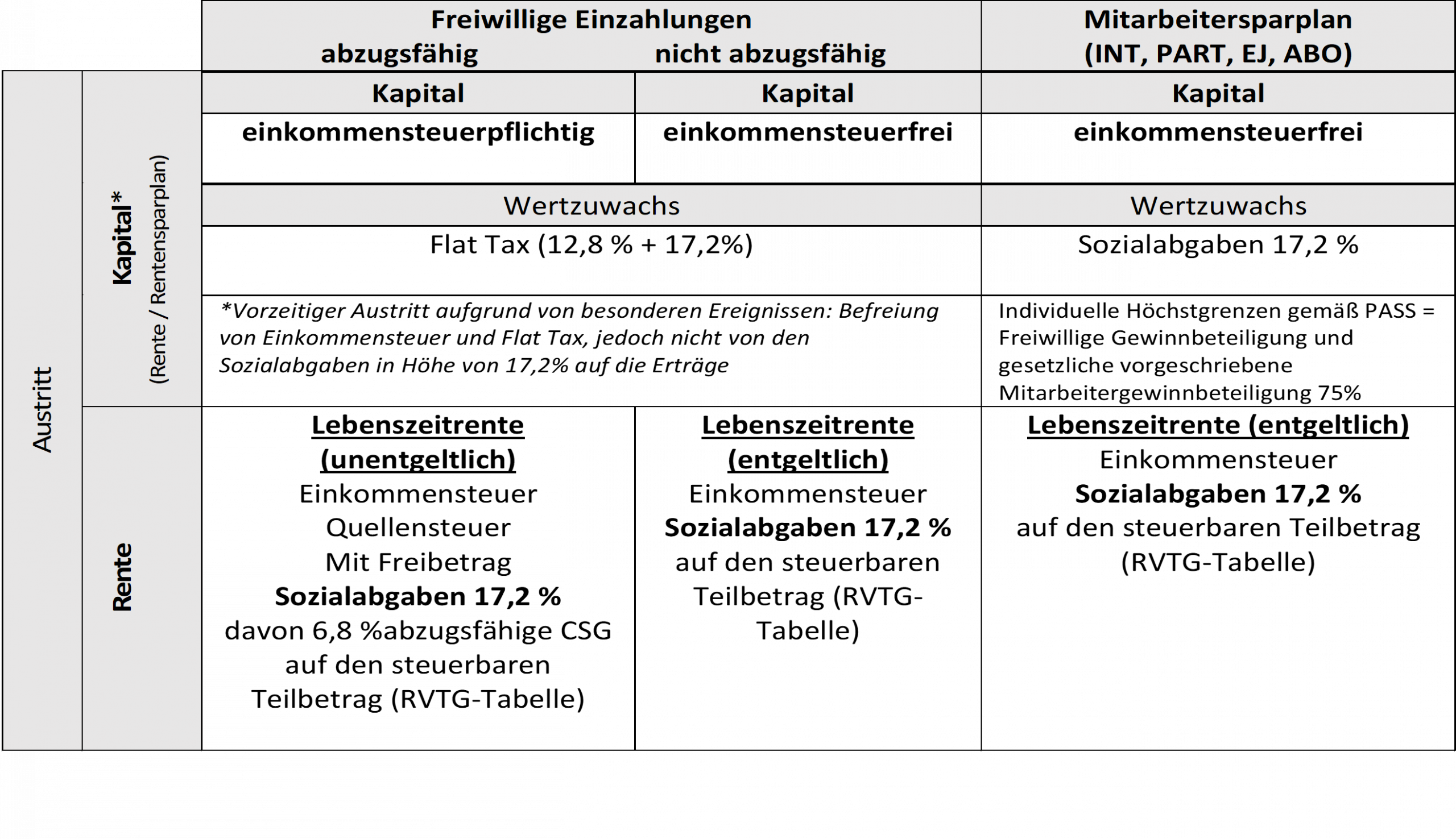 Einkommensteuer Befreit Geschuldet, außer bei Anlage in Unternehmenssparplan oder Rentensparplan Geschuldet, außer bei Anlage in Unternehmenssparplan oder Rentensparplan