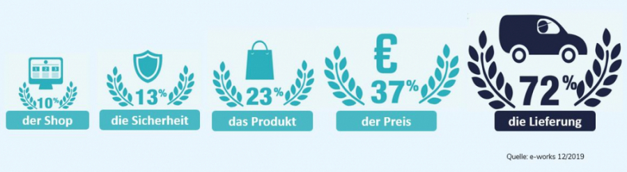 Für 72 % der Einkäufer sind die Lieferbedingungen das wichtigste Kriterium beim Kauf im Internet.