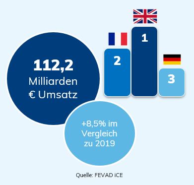 Frankreich ist der zweitgrößte E-Commerce-Markt in Europa. Hier der E-Commerce-Umsatz in Frankreich in 2020: