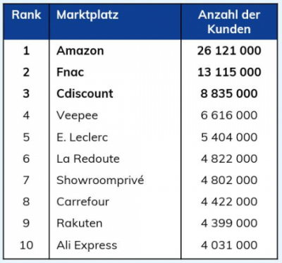 Die 10 wichtigsten Marktplätze in Frankreich im Jahr 2020 (nach Anzahl der Kunden)