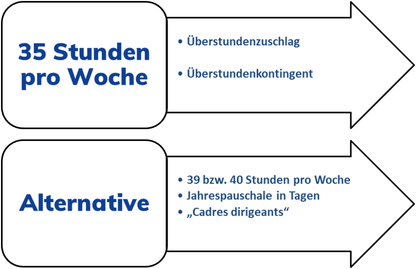 • Abhängig vom Tarifvertrag auch für nicht-leitende Angestellte („non-cadre“)